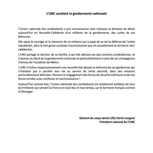Solidarité de l’UNC avec ses frères d’armes tués à l’entrainement