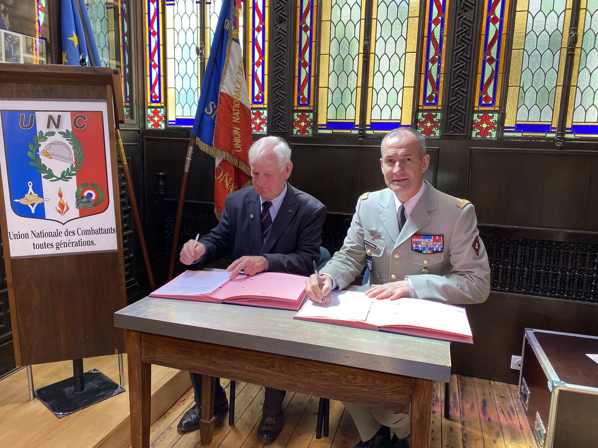 Le général de corps aérien (CR) Hervé Longuet, président national de l'UNC, et le général de division François-Xavier Poisbeau, secrétaire général de la Garde nationale, viennent de signer une charte d'engagements en faveur de la réserve opérationnelle.